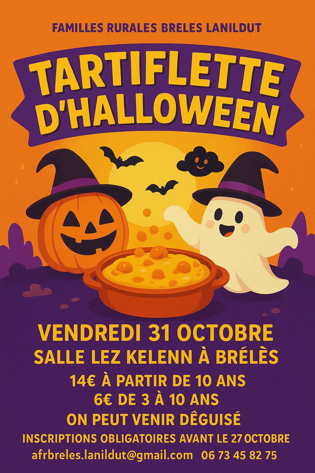 L’association Familles Rurales organise une tartiflette d’Halloween le 31 octobre à 19h à la salle Lez Kelenn à Brélès.